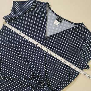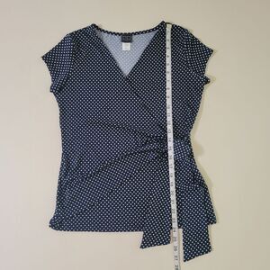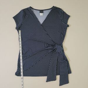 There is nothing like a flirty polka dot top in summer! This cool and comfortable polyester top featuring a criss cross styling will up your casual game. Pair with pants, jeans or shorts and sandals and you're good to go! Excellent condition.