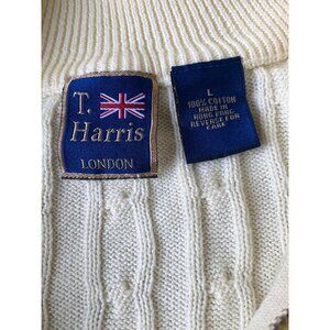 T.Harris London Cable Knit Cardigan Sweater Mens Large Yellow Preppy Classic