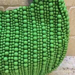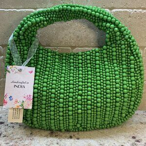 Lovely handmade beaded bag for special occasions in a pretty green color. Fully beaded on front/back, sides, bottom and handle, this handmade beaded bag has a magnetic snap closure with matching fabric interior and slip pocket. Made by hand in India. A very beautiful bag to compliment your summer, special event, or wedding attire.