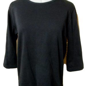 TIA TOO! Combed Cotton Tshirt Top S Black scoop neck 3/4 sleeve Loose fit blouse