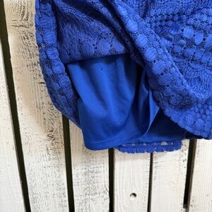 TIANA B Lace Crochet Bodycon Cocktail Dress Size XL Cobalt Blue Coquette Romance Pullover Stretch Romantic Night Out Wedding Guest Scoop Neck Whimsical Boho Lined Royal Blue Sexy Special Holiday Event Whimsy Fairy