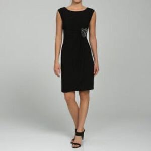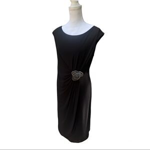 TIANA B. RUCHED BLACK SLEEVELESS DRESS LARGE