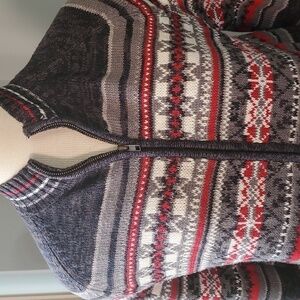 TIARA INTERNATIONAL size small zipper sweater. Gray, white & red. GOOD C…