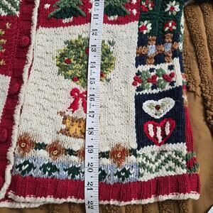 TIARA Womens Vintage 90s Christmas Holiday Novelty Cottage Embroidered Knit Cardigan Sweater Medium Petite