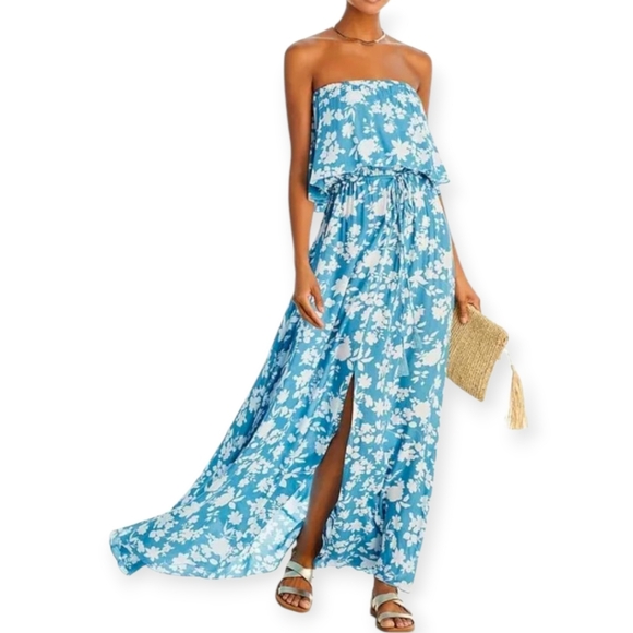 TIARE HAWAII MALDIVES FLORAL STRAPLESS MAXI DRESS O/S
