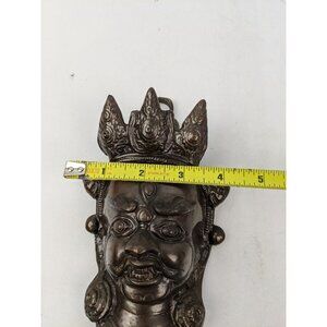 TIBETAN MAHAKALA Vintage BRASS METAL MASK Wall Door Hanging 8" Figure