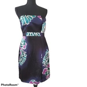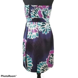 TIBI Anthropologie Sz 2 Silk Dress Strapless Blue Teal Purple Floral