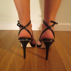 TIBI Black Leather Ankle Strap High Heel Sandals