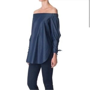 TIBI Chambray Pheasant Top Off The Shoulder 0