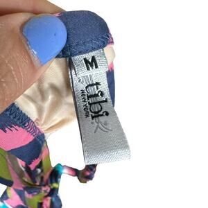 Women's colorful chevron patterned halter neck swimsuit top from Tibi in size medium. there's some sun discoloration on the left side as shown otherwise great used condition.