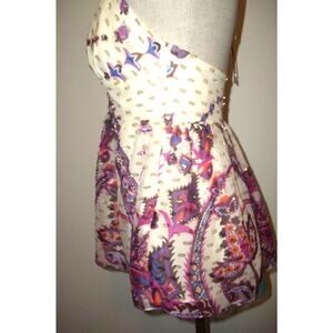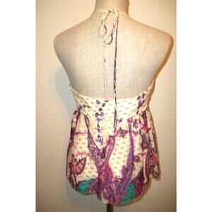TIBI Cream-Gold & Multi-colored Floral Print Silk Halter Top Blouse Shirt 6