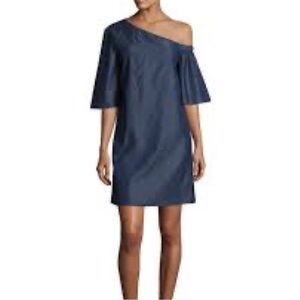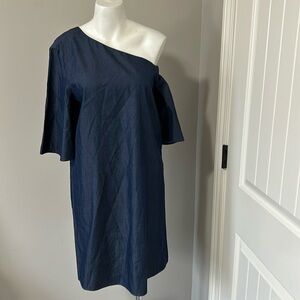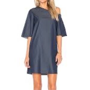 TIBI Dark Denim One Shoulder Mini Shift Dress Dark Blue Cotton Lightweight 4 NEW