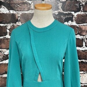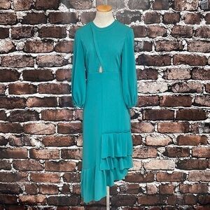 TIBI Dress NWT Asymmetrical Teal Green Asymmetrical Ruffle Balloon Sleeve Size 0