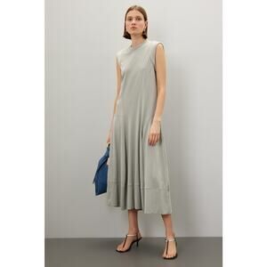 TIBI Grey Cotton Sleeveless Pull On Crewneck T-shirt Midi Dress Size Small
