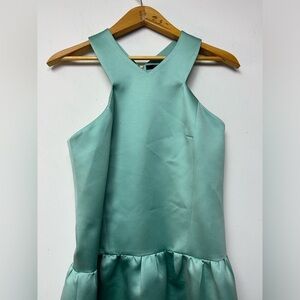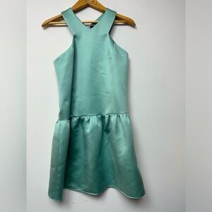 TIBI Halter V-Neck light Teal Green Sleeveless Fi-Flare Mini Dress size 6