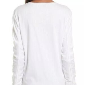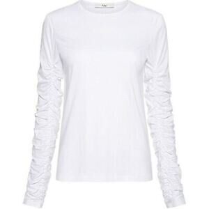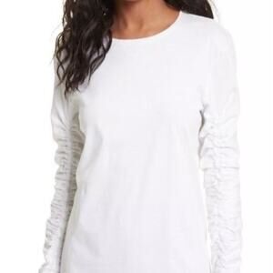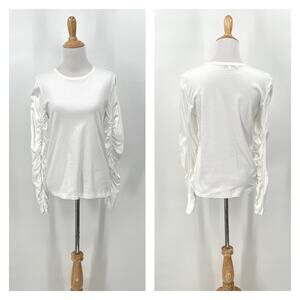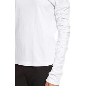TIBI Mercerized Ruched Long Sleeve Top Womens Small Crew Neck Cotton Knit Tee