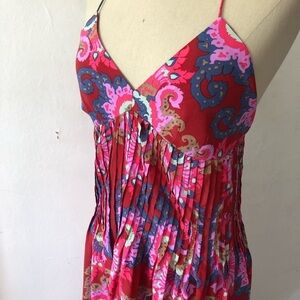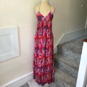 TIBI Multicolor 100% Silk Paisley Print Pleated Halter Maxi Dress EUC Size XS
