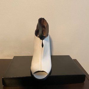 Exquisite beautiful black and white italian leather. Only wore for a couple of hours. Peep Toe Booties Stiletto Heels . Size 8.5m