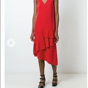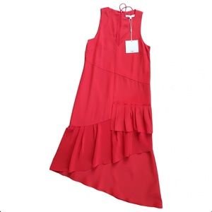 TIBI NWT V-Neck Ruffle Red Silk Dress
