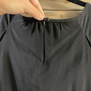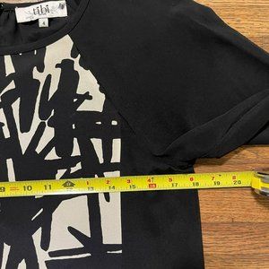 TIBI NEW YORK 100% Silk black and white abstract sheath dress. Fully Lined. Keyhole back with center closure. Cool cutouts at shoulder seams in front and back. 3/4 Sleeves. Excellent condition. Size 4.