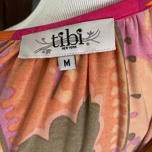 TIBI PINK ORANGE OLIVE GREEN BOHO TUNIC LOW BACK SIZE MEDIUM