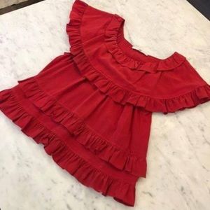 Perfect condition red ruffle top by Tibi!! Size 0, great quality and so fun to wear out in the summer