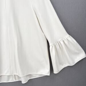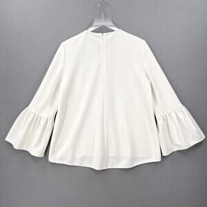 TIBI Ruffle Bell Sleeve Top Womens 4 Off White Chalky Drape Crew Neck Blouse