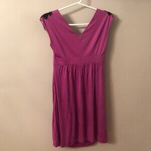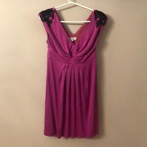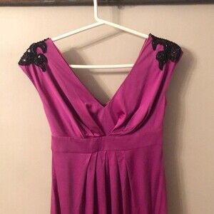 TIBI SMALL PINK SILK V NECK DRESS WITH BLACK BEADED SHOULDER APPLIQUES