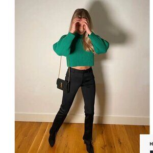 Tibi sweater, cropped wool pullover, green knit top, puff sleeve sweater, modern preppy, boho chic, luxury knitwear, petite fit, street style sweater, fashion-forward, cool girl style, designer sweater XS, statement sleeve top