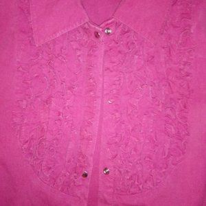 TIBI Top Ruffle Front , Snap Buttons 3/4 Sleeve w/ Ruffles on Ends Faded Red-ish Color