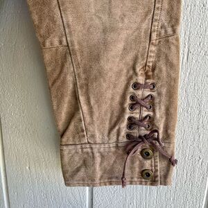 TIBI Vintage Vegan Suede Capri Pants with Lace Up Ties in Tan Size 38