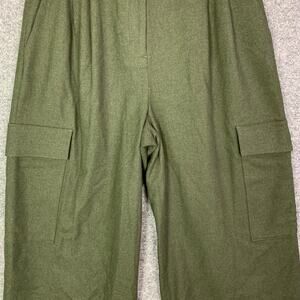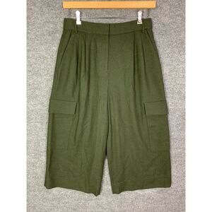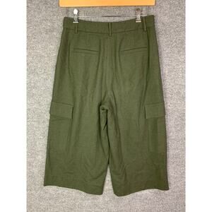 TIBI Women's Wool Blend Cargo Pant SZ 6 Olive Green Crop Pockets