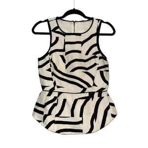 TIBI Zebra Print Wool Silk Blend Sleeveless Cream Black Abstract Peplum Top