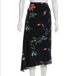 TIBI black hummingbird floral fall midi asymmetrical fashion skirt 0