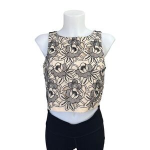 TIBI Black Nude Floral Lace Crop Tank Sleeveless Blouse size 2