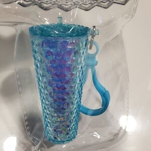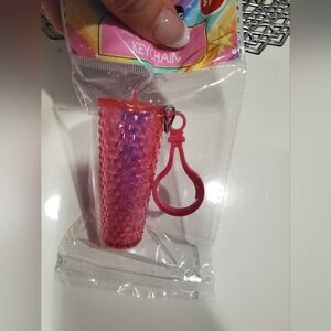 Set of four mini cup keychains in vibrant colors. Great for accessorizing your keys.