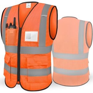 [PREMIUM MATERIAL] The reflective vest is built with premium material such as breathable yet durable polyester mesh, and smooth tough zipper, and pocket lids have velcro to secure your tools or personal belongings. Reflective strips width and surface area meet ANSI stands.