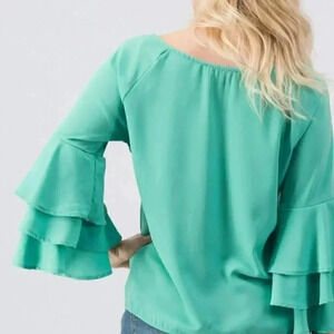 RUFFLED LAYERED SLEEVED TIE FRONT TOP 100% POLYESTER
