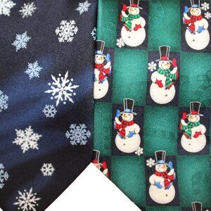 TIE TRIO 3 Winter Ties Neckties by Hallmark Snowman Blue Green HOLIDAY FUN