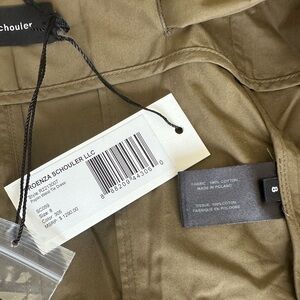 Falling to a fluid handkerchief hem, the American label's midi dress is tied along the waist in their olive green cotton poplin. Concealed button front closures. Waist tie fastening.