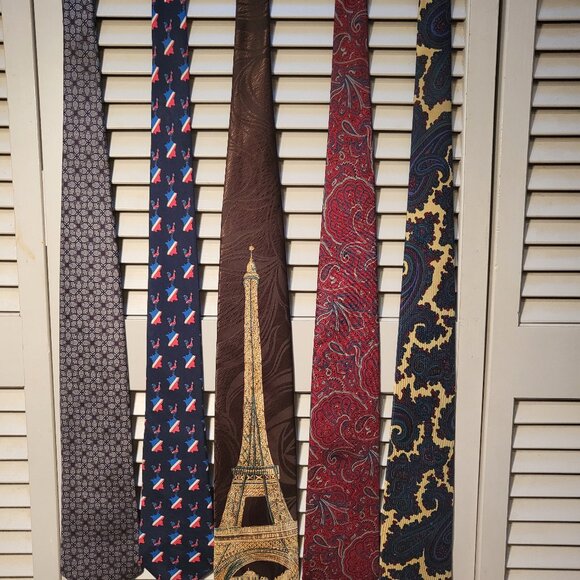 Thinning out my 300+ tie collection. All are stain free. I will be selling in lots of five; many well known brands. Here we begin,
