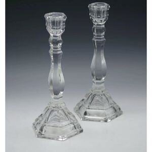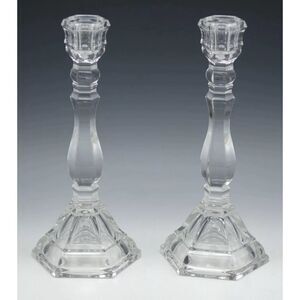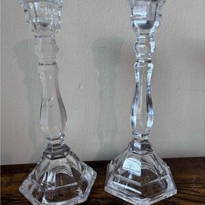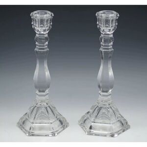 TIFFANY AND CO CRYSTAL HAMPTON 9" CANDLESTICK CANDLE HOLDER PAIR MADE IN GERMANY