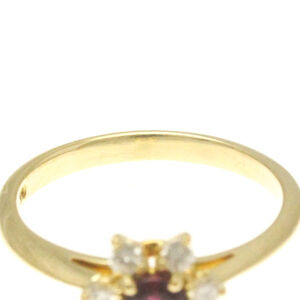This exquisite band ring, suitable for both men and women, boasts a dazzling centerpiece featuring a brilliant diamond and ruby combination.