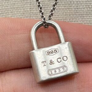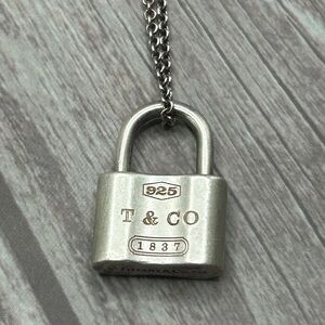 TIFFANY & CO. 1837 Lock Padlock Necklace Sterling Silver 925 Box, Dust Bag, Bag