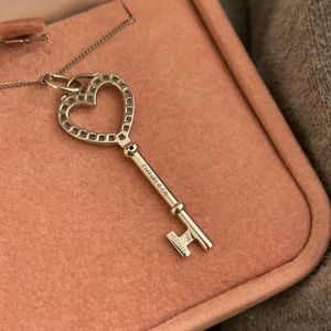 Authentic Tiffany Heart Key Pendant in 18K white gold and has 23 diamonds (d0.276ct)