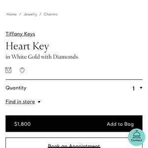 TIFFANY & CO 18k White Gold Heart Key w/ diamonds