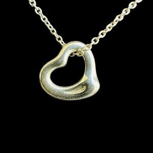 TIFFANY & CO. Open Heart Pendant Necklace Elsa Peretti Sterling Silver 925 T & Co. Jewelry Tiffany & Company Made in Spain 16”