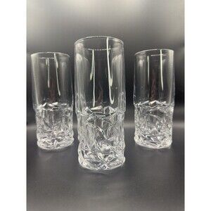 TIFFANY & CO Rock Cut Highball Glass Lead Crystal 6 1/2" Germany Set Of 3 Read