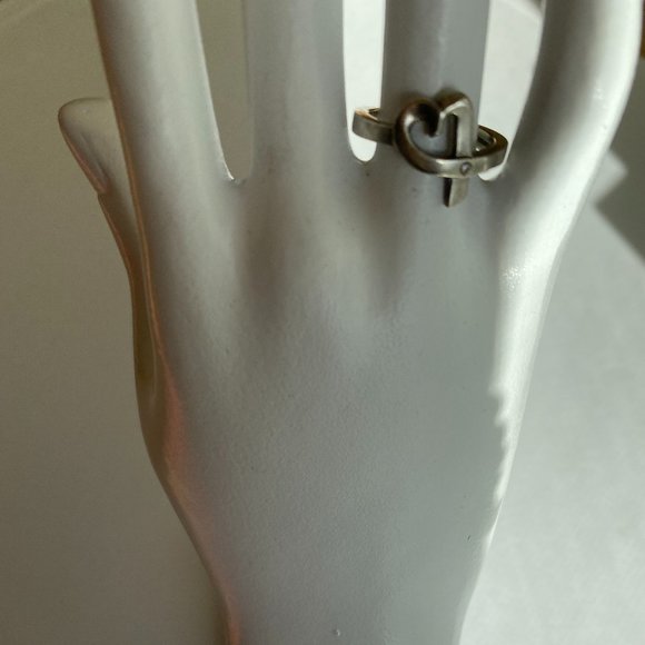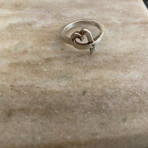 TIFFANY & CO. STERLING SILVER LOVING HEART COCKTAIL RING WITH DIAMOND- SIZE 7