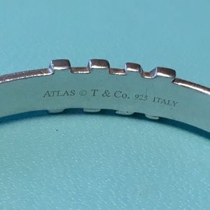 Excellent pre-loved condition for vintage T&C piece! Sterling silver (925) Atlas bangle in the harder to find relief design with satin matte finish. Hallmarked ATLAS T&Co. 925 ITALY. Bangle is solid silver and slightly oval in shape with an inner circumference of approximately 7.5”. Width is approximately .25”, or a quarter inch. No dents or significant scratches. Please see video as it is part of the description. Measurements and hallmarks in photos. Comes with T&C drawstring pouch.